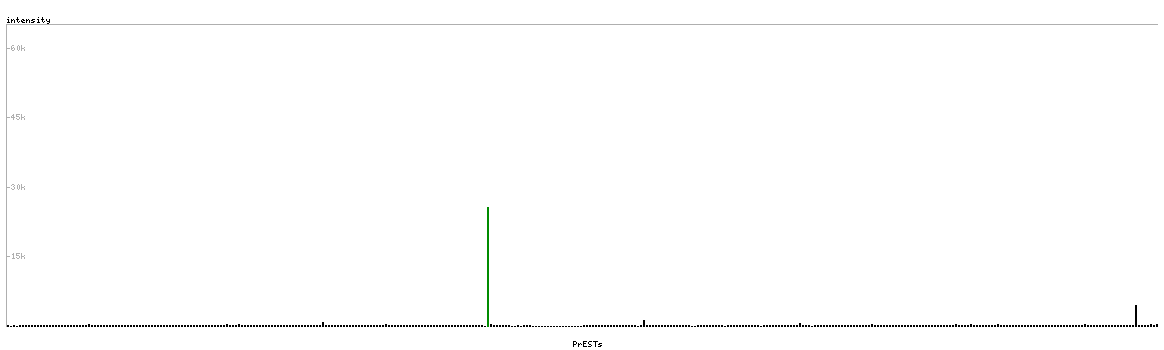 At the top of the view, the position of the antigen (identified by the corresponding HPA identifier) is shown as a green bar. A yellow triangle on the bar indicates a <100% sequence identity to the protein target.