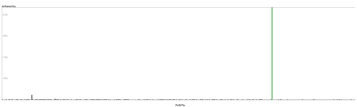 At the top of the view, the position of the antigen (identified by the corresponding HPA identifier) is shown as a green bar. A yellow triangle on the bar indicates a <100% sequence identity to the protein target.