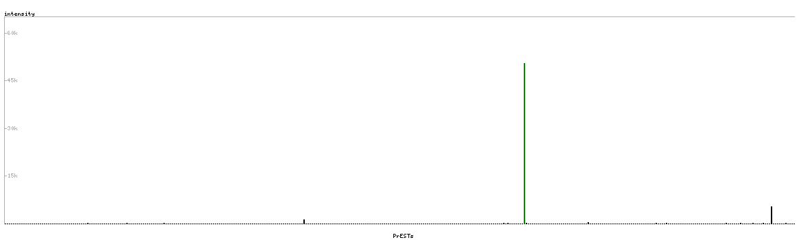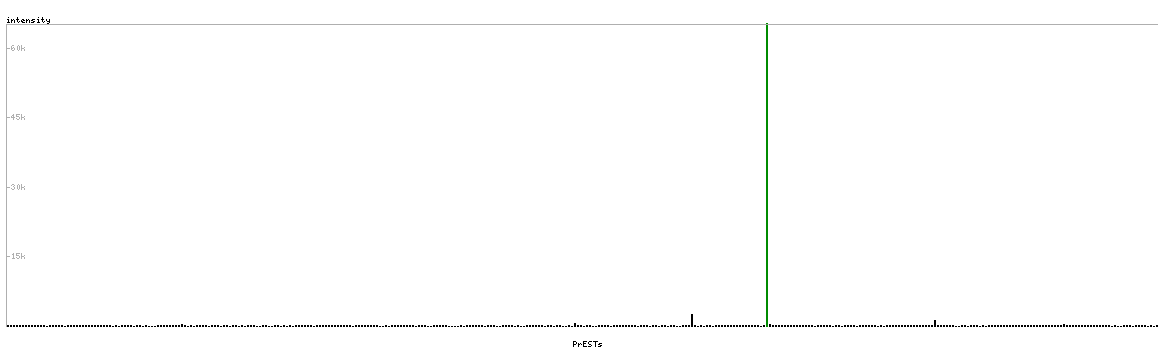 At the top of the view, the position of the antigen (identified by the corresponding HPA identifier) is shown as a green bar. A yellow triangle on the bar indicates a <100% sequence identity to the protein target.