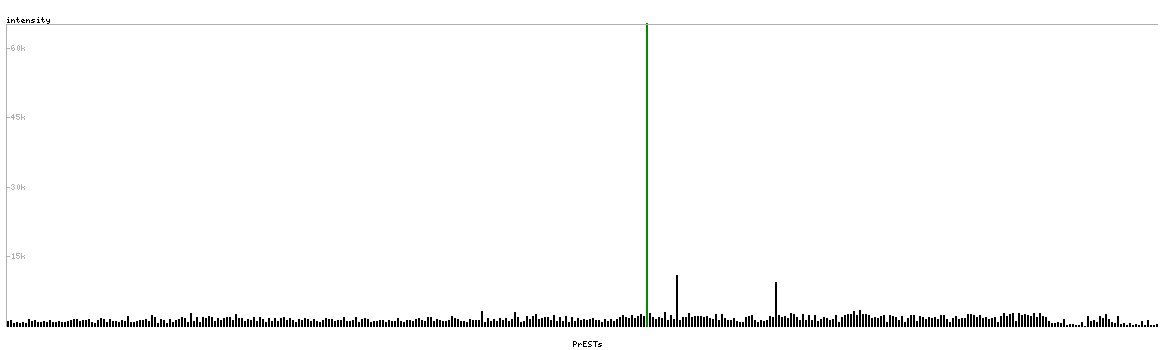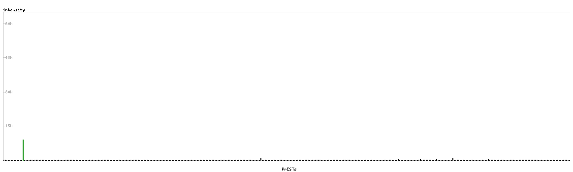 At the top of the view, the position of the antigen (identified by the corresponding HPA identifier) is shown as a green bar. A yellow triangle on the bar indicates a <100% sequence identity to the protein target.