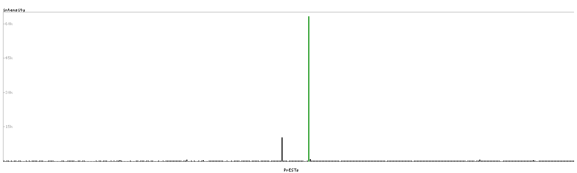 At the top of the view, the position of the antigen (identified by the corresponding HPA identifier) is shown as a green bar. A yellow triangle on the bar indicates a <100% sequence identity to the protein target.