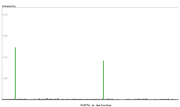 At the top of the view, the position of the antigen (identified by the corresponding HPA identifier) is shown as a green bar. A yellow triangle on the bar indicates a <100% sequence identity to the protein target.