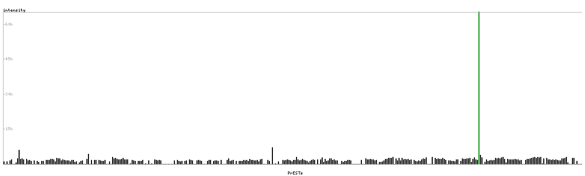 At the top of the view, the position of the antigen (identified by the corresponding HPA identifier) is shown as a green bar. A yellow triangle on the bar indicates a <100% sequence identity to the protein target.