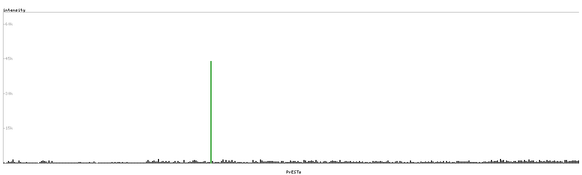 At the top of the view, the position of the antigen (identified by the corresponding HPA identifier) is shown as a green bar. A yellow triangle on the bar indicates a <100% sequence identity to the protein target.