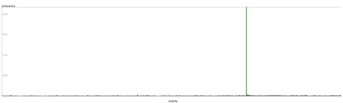At the top of the view, the position of the antigen (identified by the corresponding HPA identifier) is shown as a green bar. A yellow triangle on the bar indicates a <100% sequence identity to the protein target.