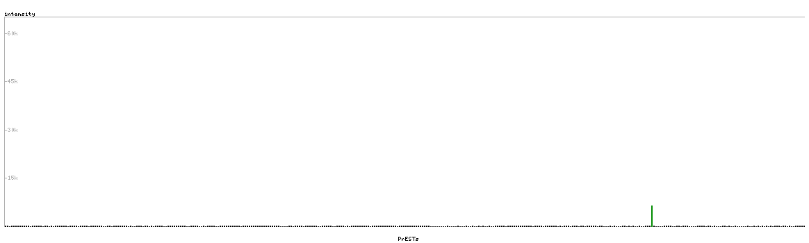 At the top of the view, the position of the antigen (identified by the corresponding HPA identifier) is shown as a green bar. A yellow triangle on the bar indicates a <100% sequence identity to the protein target.