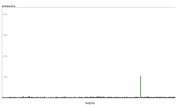 At the top of the view, the position of the antigen (identified by the corresponding HPA identifier) is shown as a green bar. A yellow triangle on the bar indicates a <100% sequence identity to the protein target.