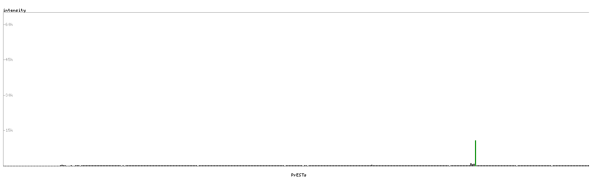 At the top of the view, the position of the antigen (identified by the corresponding HPA identifier) is shown as a green bar. A yellow triangle on the bar indicates a <100% sequence identity to the protein target.