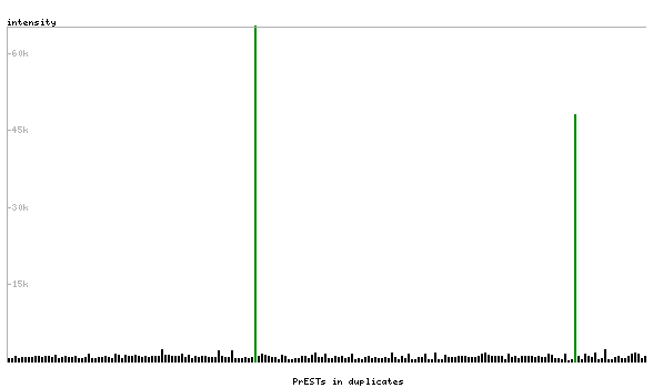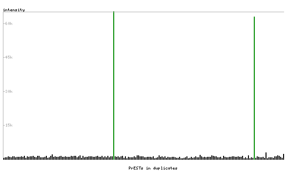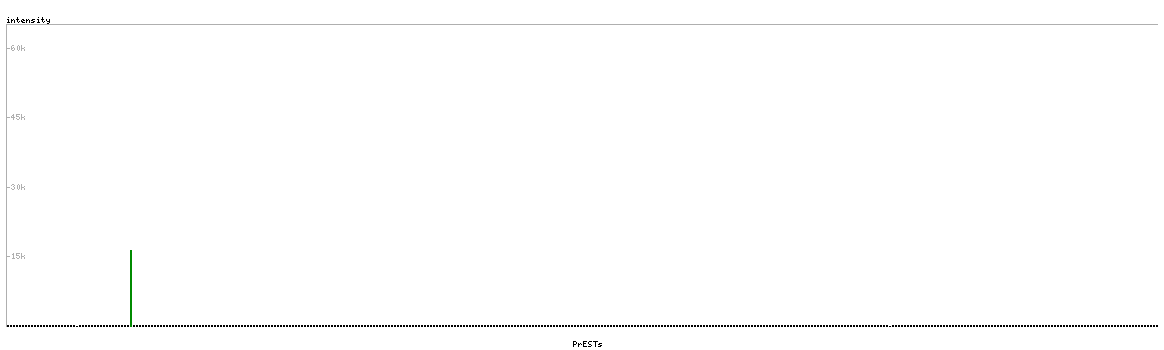 At the top of the view, the position of the antigen (identified by the corresponding HPA identifier) is shown as a green bar. A yellow triangle on the bar indicates a <100% sequence identity to the protein target.