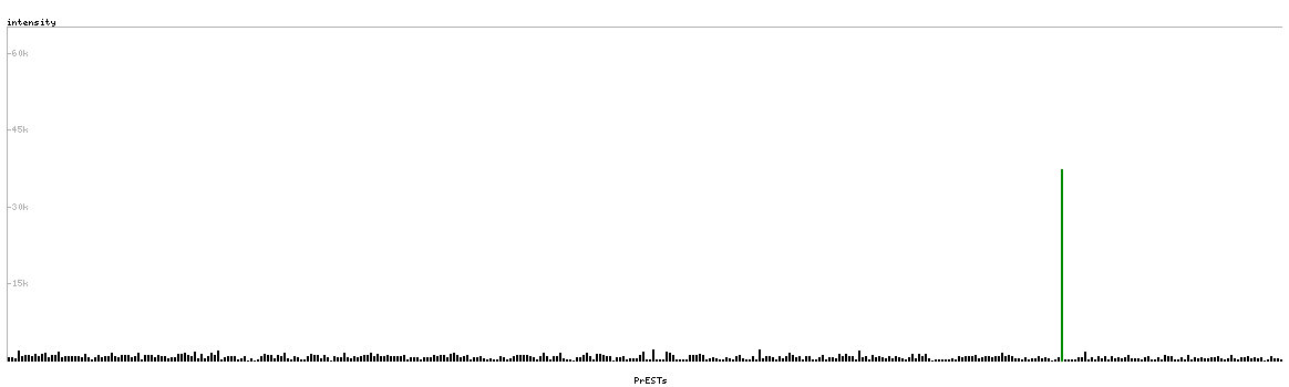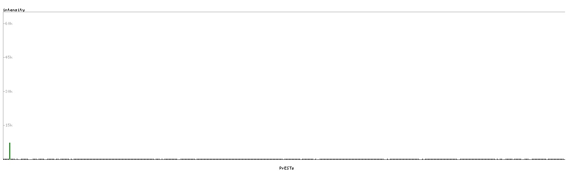 At the top of the view, the position of the antigen (identified by the corresponding HPA identifier) is shown as a green bar. A yellow triangle on the bar indicates a <100% sequence identity to the protein target.