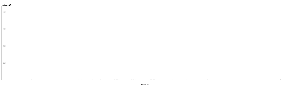 At the top of the view, the position of the antigen (identified by the corresponding HPA identifier) is shown as a green bar. A yellow triangle on the bar indicates a <100% sequence identity to the protein target.
