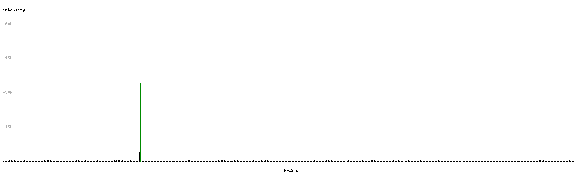 At the top of the view, the position of the antigen (identified by the corresponding HPA identifier) is shown as a green bar. A yellow triangle on the bar indicates a <100% sequence identity to the protein target.