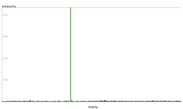 At the top of the view, the position of the antigen (identified by the corresponding HPA identifier) is shown as a green bar. A yellow triangle on the bar indicates a <100% sequence identity to the protein target.