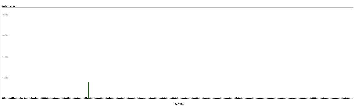 At the top of the view, the position of the antigen (identified by the corresponding HPA identifier) is shown as a green bar. A yellow triangle on the bar indicates a <100% sequence identity to the protein target.
