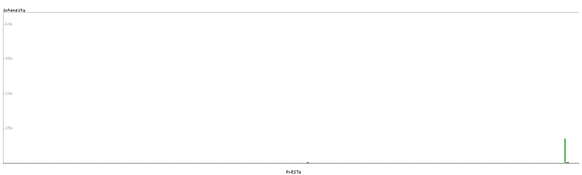 At the top of the view, the position of the antigen (identified by the corresponding HPA identifier) is shown as a green bar. A yellow triangle on the bar indicates a <100% sequence identity to the protein target.