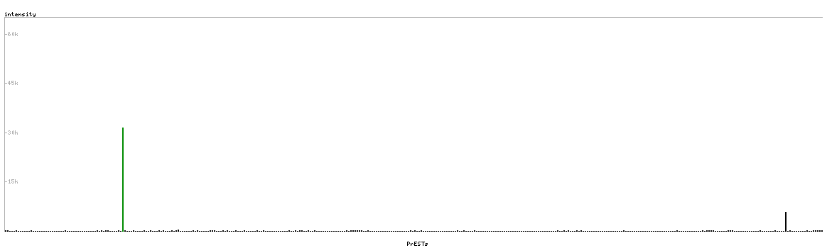 At the top of the view, the position of the antigen (identified by the corresponding HPA identifier) is shown as a green bar. A yellow triangle on the bar indicates a <100% sequence identity to the protein target.
