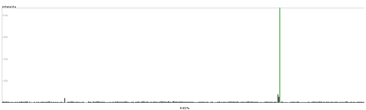 At the top of the view, the position of the antigen (identified by the corresponding HPA identifier) is shown as a green bar. A yellow triangle on the bar indicates a <100% sequence identity to the protein target.