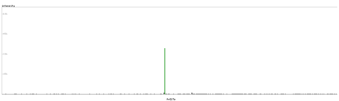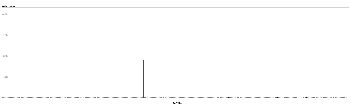 At the top of the view, the position of the antigen (identified by the corresponding HPA identifier) is shown as a green bar. A yellow triangle on the bar indicates a <100% sequence identity to the protein target.