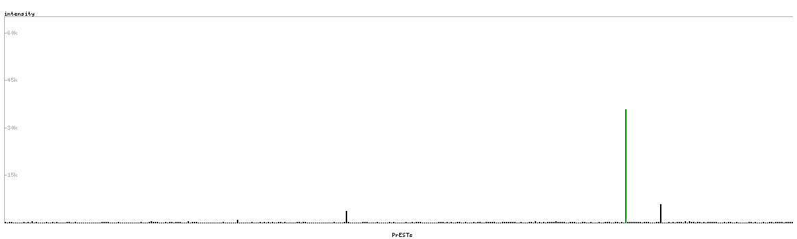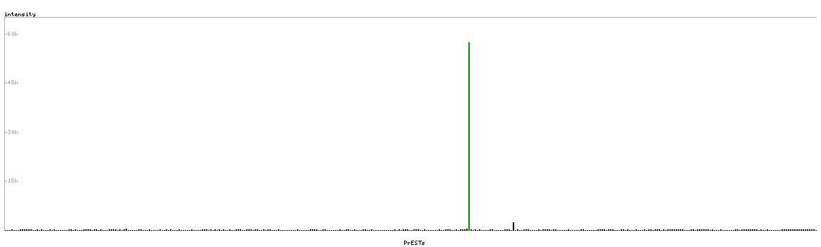 At the top of the view, the position of the antigen (identified by the corresponding HPA identifier) is shown as a green bar. A yellow triangle on the bar indicates a <100% sequence identity to the protein target.