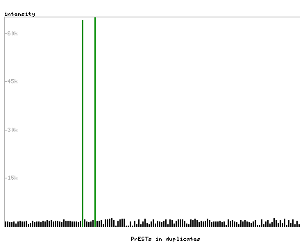 At the top of the view, the position of the antigen (identified by the corresponding HPA identifier) is shown as a green bar. A yellow triangle on the bar indicates a <100% sequence identity to the protein target.