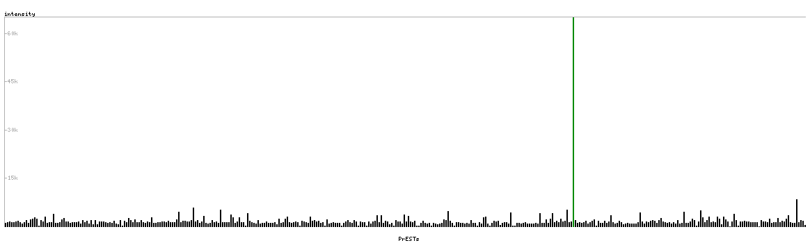 At the top of the view, the position of the antigen (identified by the corresponding HPA identifier) is shown as a green bar. A yellow triangle on the bar indicates a <100% sequence identity to the protein target.
