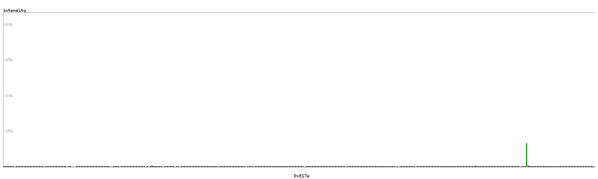 At the top of the view, the position of the antigen (identified by the corresponding HPA identifier) is shown as a green bar. A yellow triangle on the bar indicates a <100% sequence identity to the protein target.