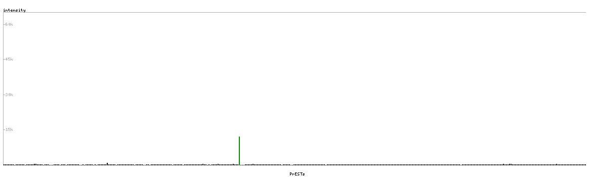 At the top of the view, the position of the antigen (identified by the corresponding HPA identifier) is shown as a green bar. A yellow triangle on the bar indicates a <100% sequence identity to the protein target.