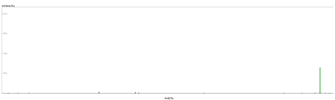 At the top of the view, the position of the antigen (identified by the corresponding HPA identifier) is shown as a green bar. A yellow triangle on the bar indicates a <100% sequence identity to the protein target.