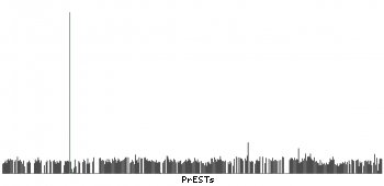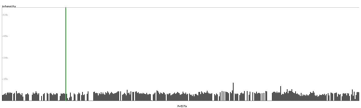At the top of the view, the position of the antigen (identified by the corresponding HPA identifier) is shown as a green bar. A yellow triangle on the bar indicates a <100% sequence identity to the protein target.