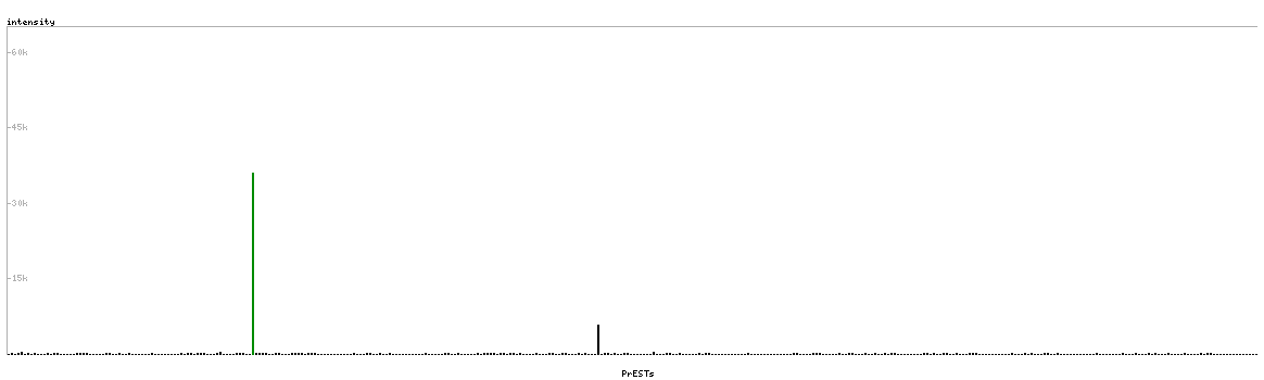 At the top of the view, the position of the antigen (identified by the corresponding HPA identifier) is shown as a green bar. A yellow triangle on the bar indicates a <100% sequence identity to the protein target.