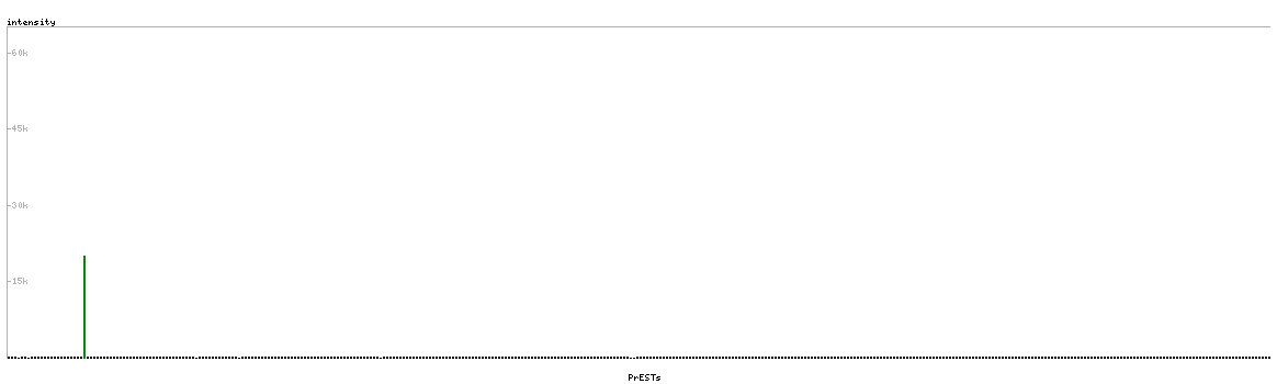 At the top of the view, the position of the antigen (identified by the corresponding HPA identifier) is shown as a green bar. A yellow triangle on the bar indicates a <100% sequence identity to the protein target.