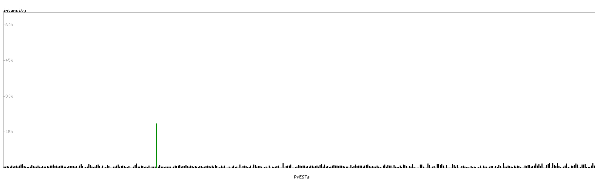 At the top of the view, the position of the antigen (identified by the corresponding HPA identifier) is shown as a green bar. A yellow triangle on the bar indicates a <100% sequence identity to the protein target.