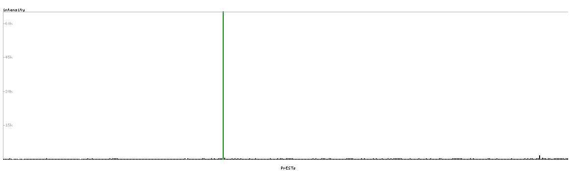 At the top of the view, the position of the antigen (identified by the corresponding HPA identifier) is shown as a green bar. A yellow triangle on the bar indicates a <100% sequence identity to the protein target.