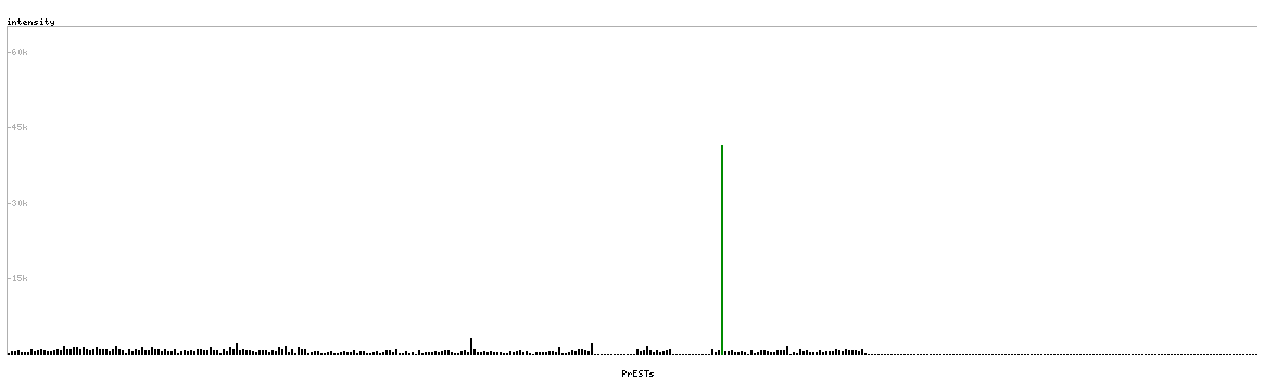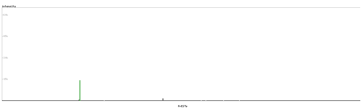 At the top of the view, the position of the antigen (identified by the corresponding HPA identifier) is shown as a green bar. A yellow triangle on the bar indicates a <100% sequence identity to the protein target.