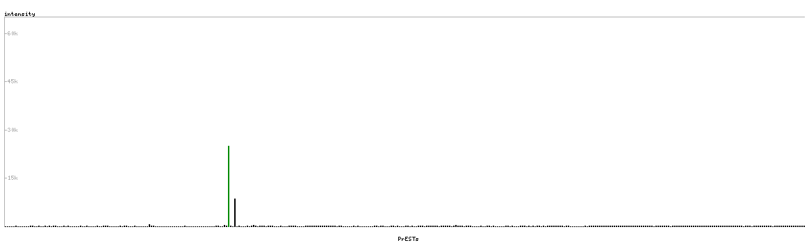 At the top of the view, the position of the antigen (identified by the corresponding HPA identifier) is shown as a green bar. A yellow triangle on the bar indicates a <100% sequence identity to the protein target.