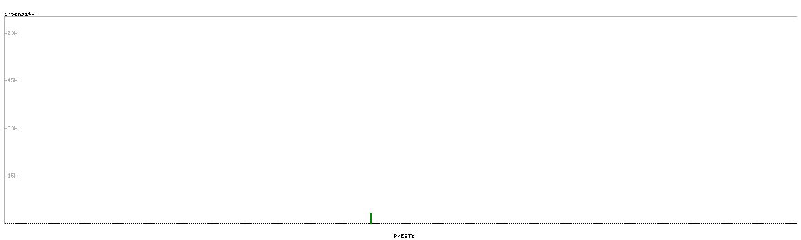 At the top of the view, the position of the antigen (identified by the corresponding HPA identifier) is shown as a green bar. A yellow triangle on the bar indicates a <100% sequence identity to the protein target.