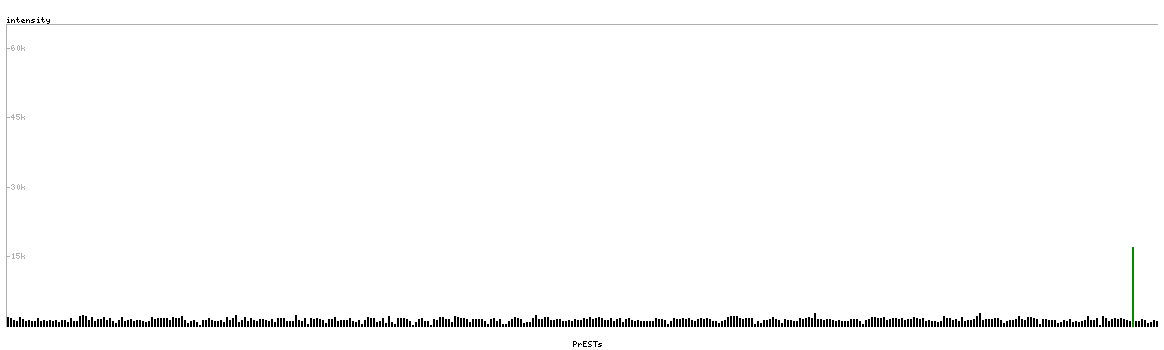 At the top of the view, the position of the antigen (identified by the corresponding HPA identifier) is shown as a green bar. A yellow triangle on the bar indicates a <100% sequence identity to the protein target.