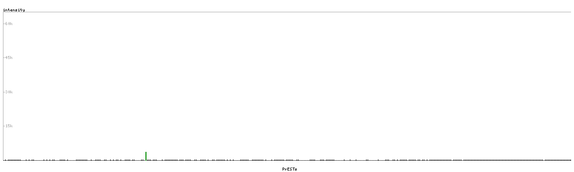 At the top of the view, the position of the antigen (identified by the corresponding HPA identifier) is shown as a green bar. A yellow triangle on the bar indicates a <100% sequence identity to the protein target.