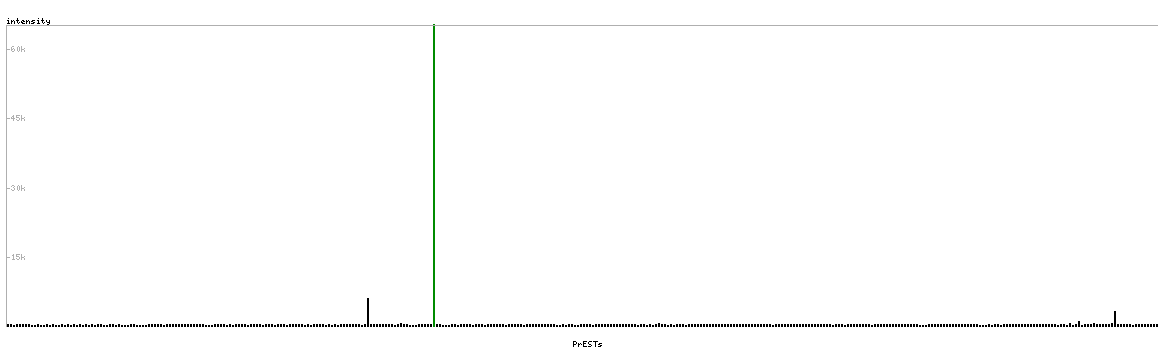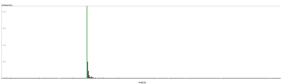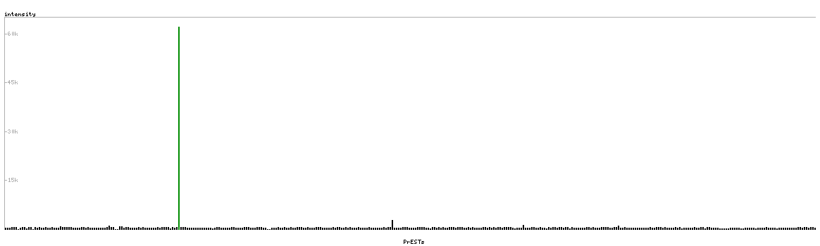 At the top of the view, the position of the antigen (identified by the corresponding HPA identifier) is shown as a green bar. A yellow triangle on the bar indicates a <100% sequence identity to the protein target.