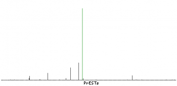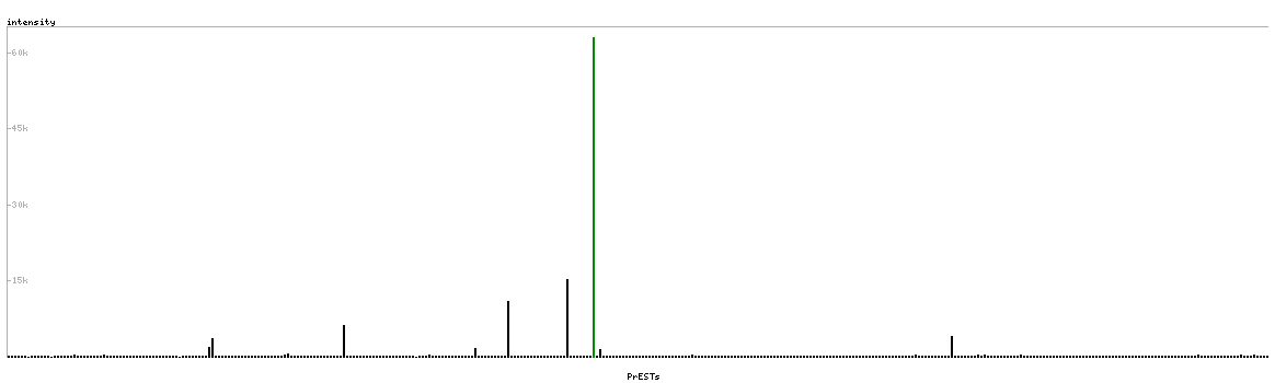 At the top of the view, the position of the antigen (identified by the corresponding HPA identifier) is shown as a green bar. A yellow triangle on the bar indicates a <100% sequence identity to the protein target.