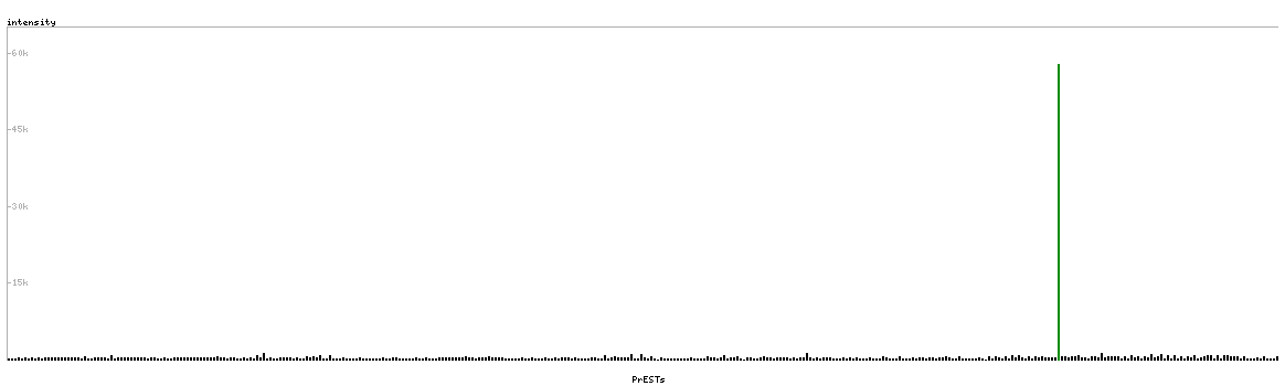 At the top of the view, the position of the antigen (identified by the corresponding HPA identifier) is shown as a green bar. A yellow triangle on the bar indicates a <100% sequence identity to the protein target.