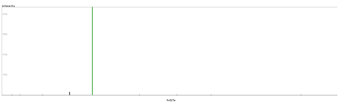 At the top of the view, the position of the antigen (identified by the corresponding HPA identifier) is shown as a green bar. A yellow triangle on the bar indicates a <100% sequence identity to the protein target.