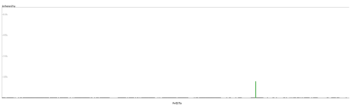 At the top of the view, the position of the antigen (identified by the corresponding HPA identifier) is shown as a green bar. A yellow triangle on the bar indicates a <100% sequence identity to the protein target.