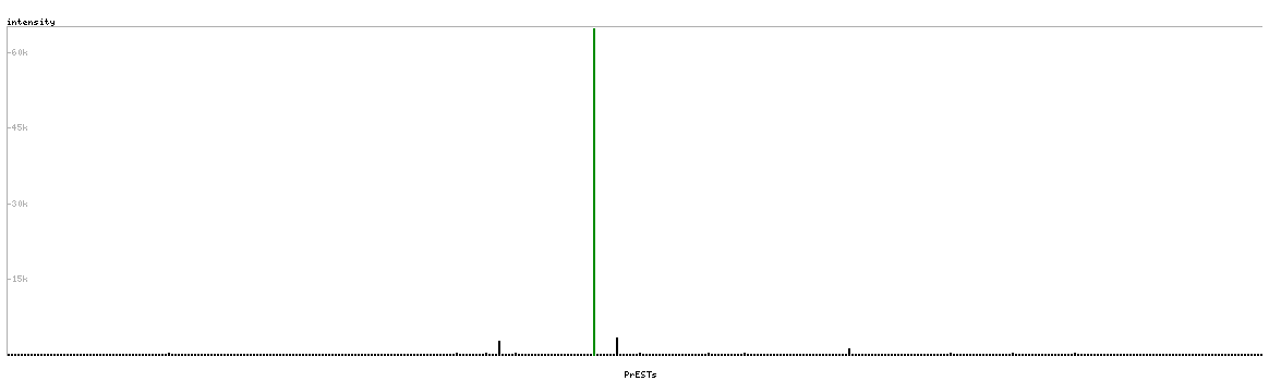 At the top of the view, the position of the antigen (identified by the corresponding HPA identifier) is shown as a green bar. A yellow triangle on the bar indicates a <100% sequence identity to the protein target.