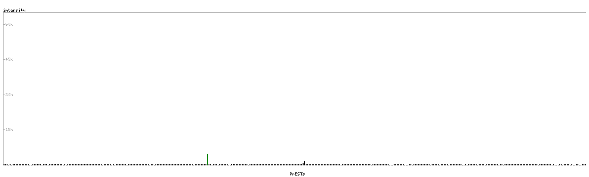 At the top of the view, the position of the antigen (identified by the corresponding HPA identifier) is shown as a green bar. A yellow triangle on the bar indicates a <100% sequence identity to the protein target.