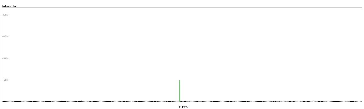 At the top of the view, the position of the antigen (identified by the corresponding HPA identifier) is shown as a green bar. A yellow triangle on the bar indicates a <100% sequence identity to the protein target.