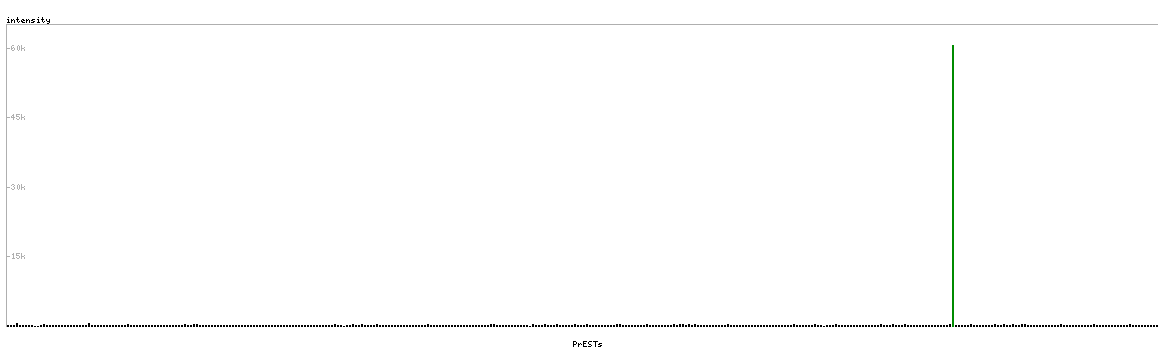 At the top of the view, the position of the antigen (identified by the corresponding HPA identifier) is shown as a green bar. A yellow triangle on the bar indicates a <100% sequence identity to the protein target.