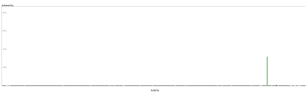 At the top of the view, the position of the antigen (identified by the corresponding HPA identifier) is shown as a green bar. A yellow triangle on the bar indicates a <100% sequence identity to the protein target.