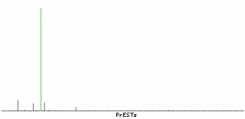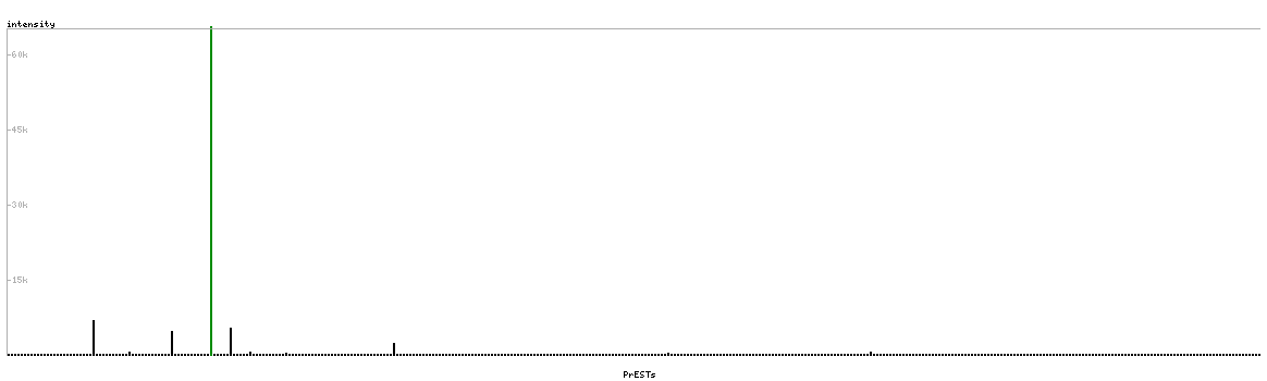 At the top of the view, the position of the antigen (identified by the corresponding HPA identifier) is shown as a green bar. A yellow triangle on the bar indicates a <100% sequence identity to the protein target.