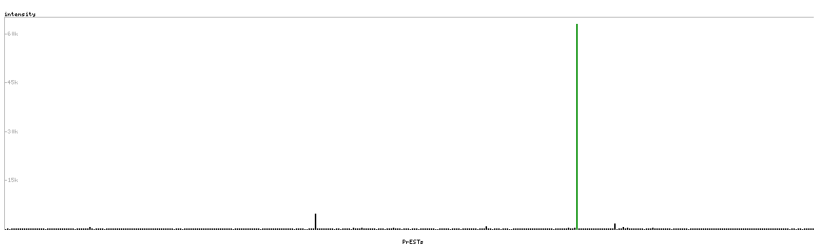 At the top of the view, the position of the antigen (identified by the corresponding HPA identifier) is shown as a green bar. A yellow triangle on the bar indicates a <100% sequence identity to the protein target.